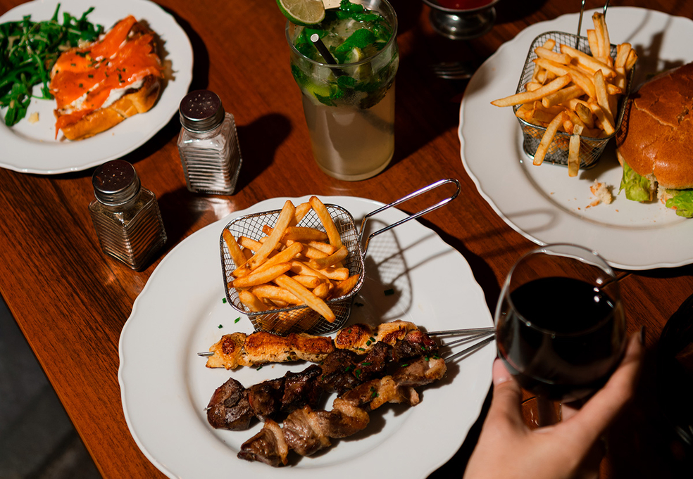 La carte du restaurant est un savant mélange de plats généreux, la plupart 100 % maison, élaborés à partir de produits frais. Elle est riche de tapas, tartares, brochettes, burgers, fish and chips. Les desserts sont confiés à une pâtissière dédiée, qui crée des douceurs sur-mesure. Impossible de résister à la tentation du carrot cake, du tiramisu, ou encore aux macarons...